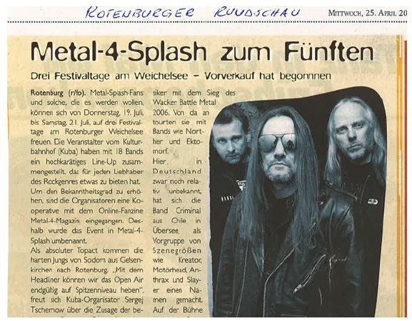 31.07.2012 MetalSplash 2012 in der lokalen Presse