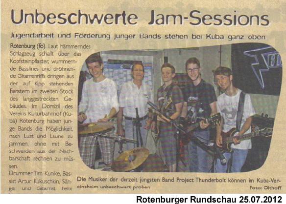 Unbeschertw Jam-Sessions - Jugendarbeit und Förderung junger Bands stehen bei Kuba ganz oben... so die Rotenburger Rundschau (zum Download des Artikels als PDF bitte auf die Grafik <klicken>...)