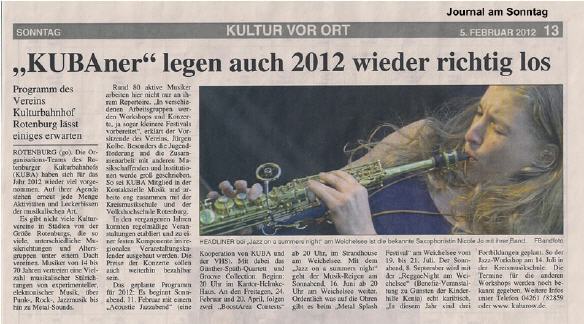 Unbeschertw Jam-Sessions - Jugendarbeit und Förderung junger Bands stehen bei Kuba ganz oben... so die Rotenburger Rundschau (zum Download des Artikels als PDF bitte auf die Grafik <klicken>...)