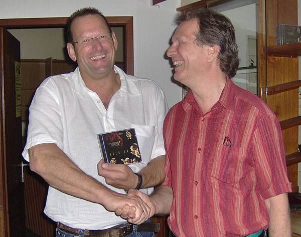 besuchte 2006 die Räumlichkeiten des Kulturbahnhof Rotenburg e.V. und bekam die neueste CD der Band "Unlimited Rock" durch den Vereinsvorsitzenden Jürgen Kolbe überreicht.
